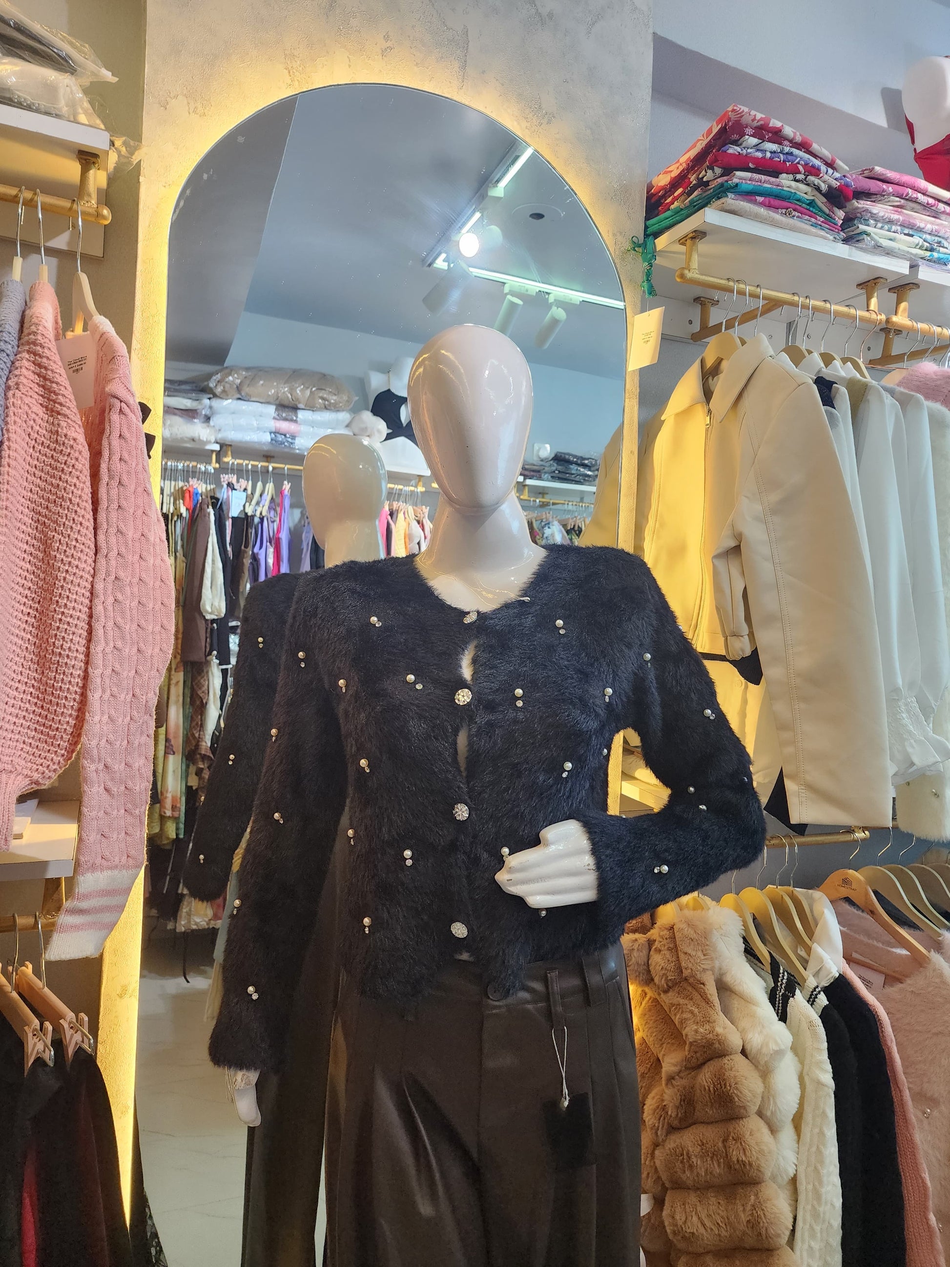 Type: Full-Sleeve Knit Cardigan / Faux Fur Sweater