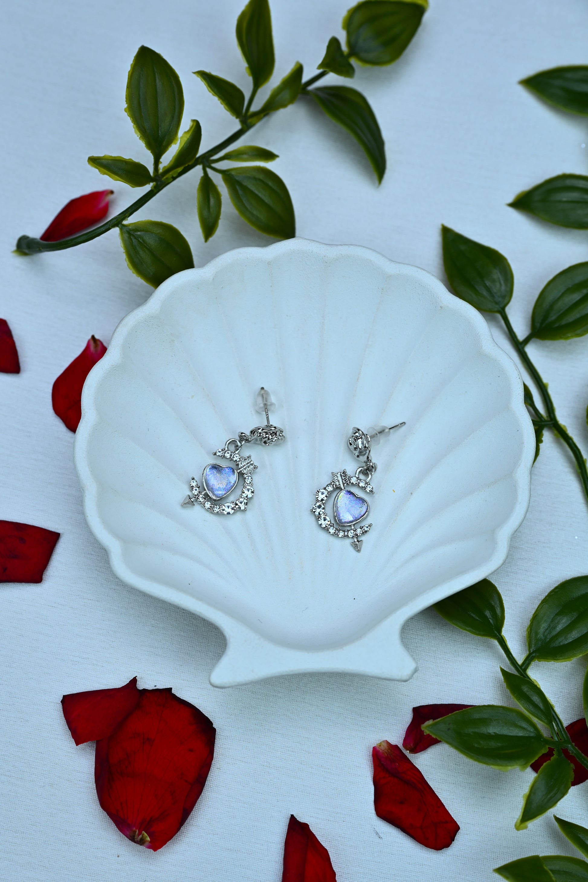 Step into a world of stardust and elegance with our Celestial Royal Heart Earrings. These exquisite silver-tone earrings feature a radiant lavender heart-shaped gem nestled inside a regal frame of shimmering crystals. The crown and orb detailing evoke a celestial, queenly charm—perfect for those who adore whimsical yet classy designs.