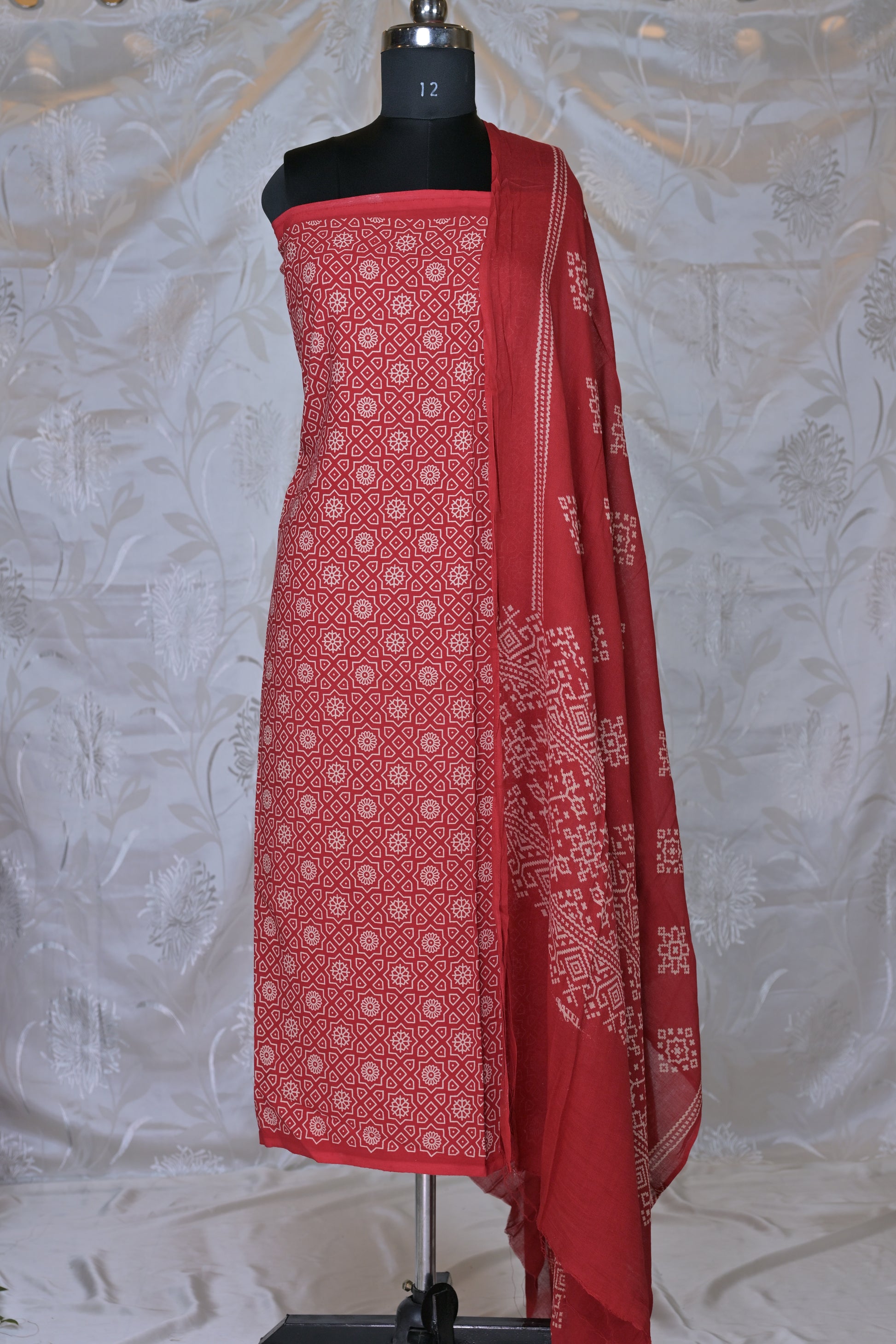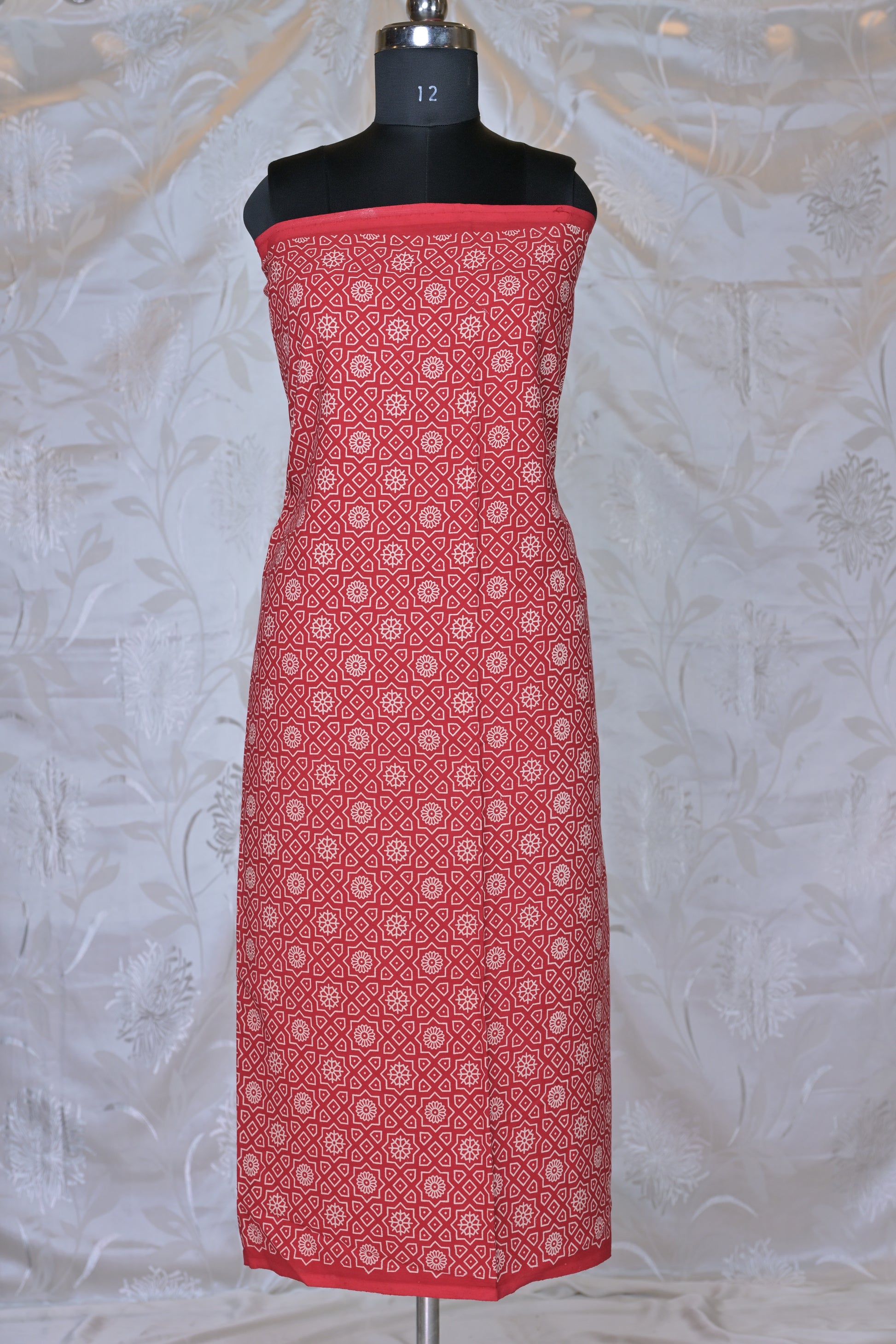 Embrace the timeless appeal of traditional prints with our elegant 3-piece unstitched suit material. Featuring intricate geometric block prints, this set is perfect for creating a sophisticated and comfortable ensemble ideal for daily wear, casual outings, or cultural events.