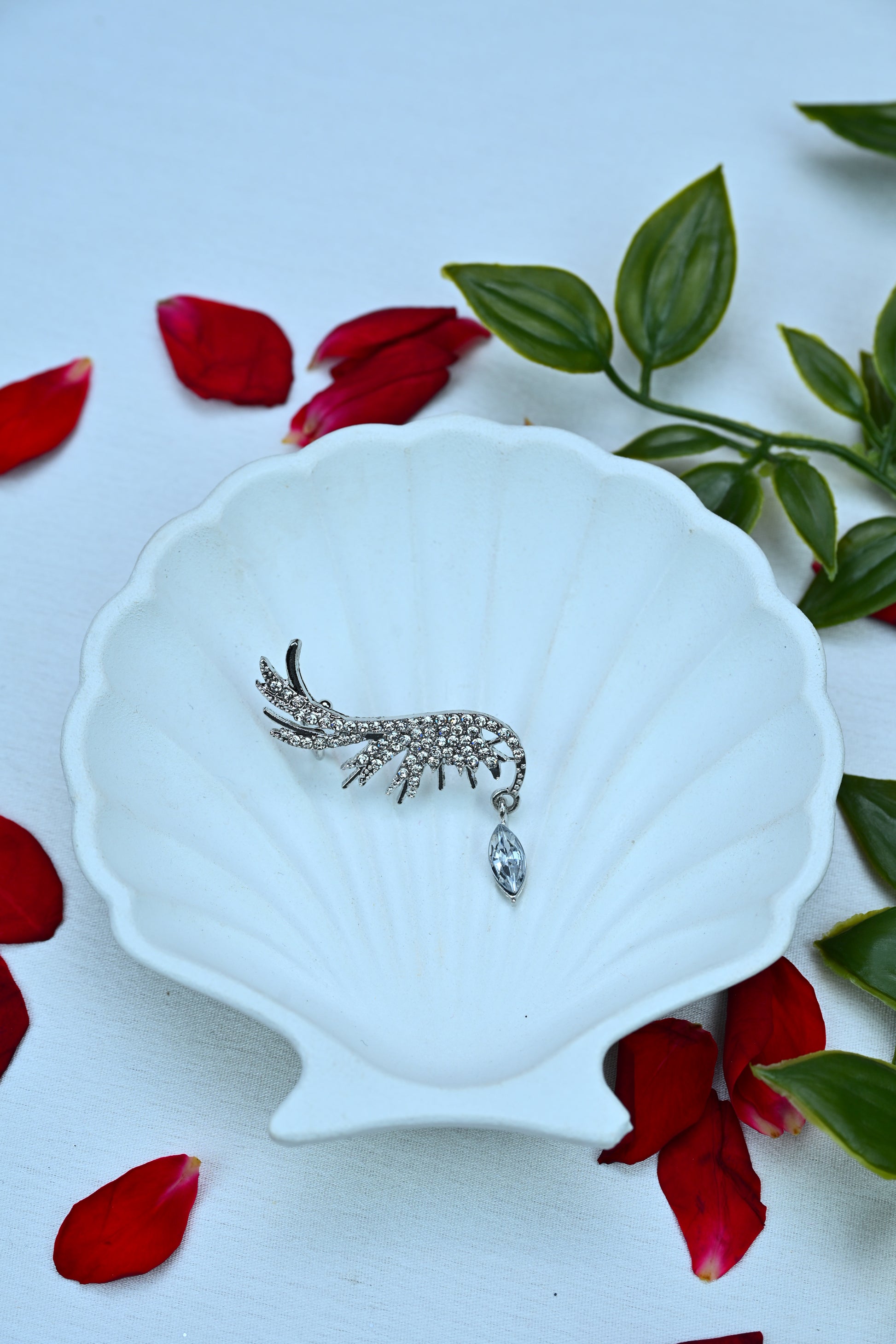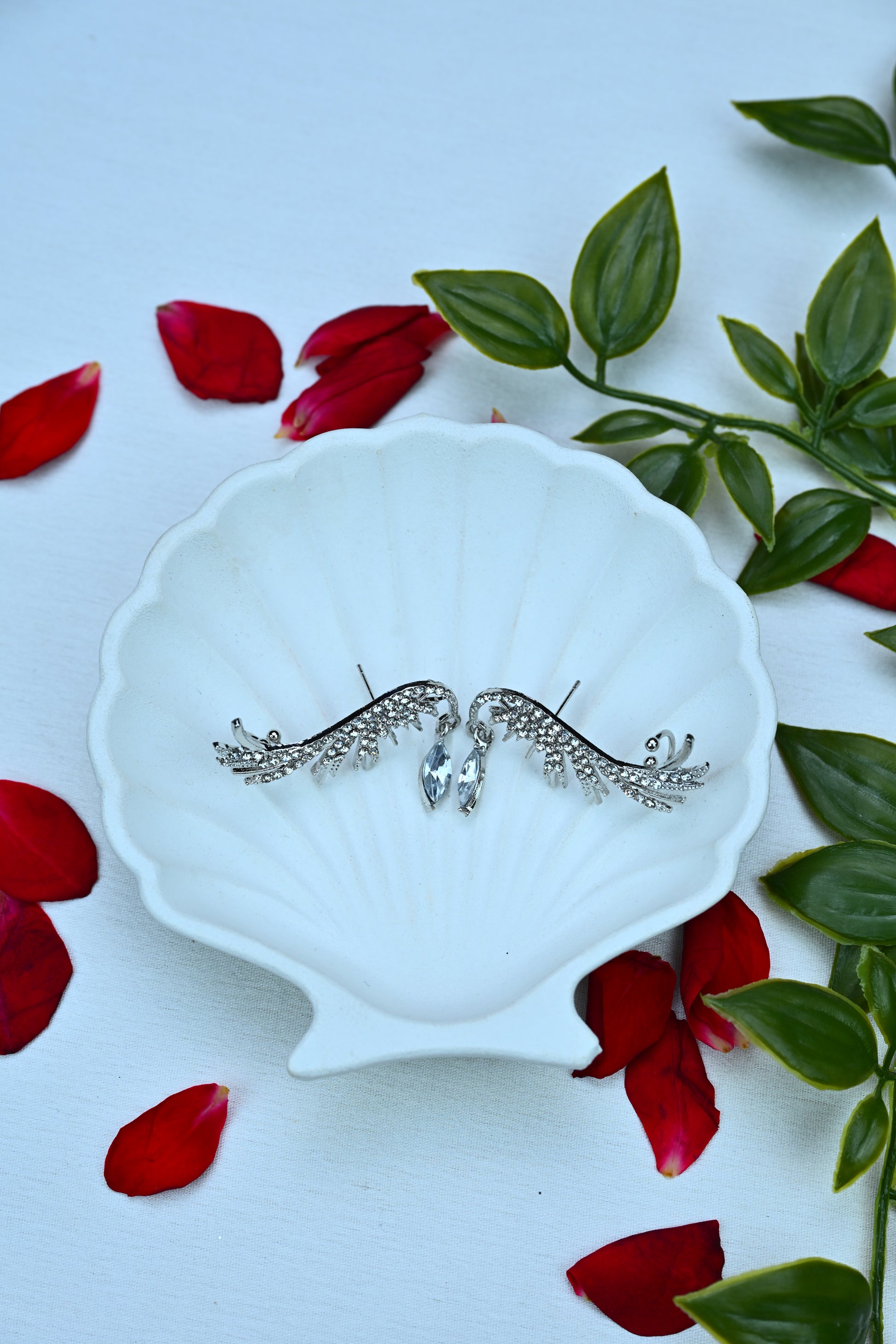 Inspired by graceful wings, these earrings feature a sweeping, feathered design adorned with shimmering crystals and a central drop accent. A perfect pick for evenings when you want to stand out effortlessly.