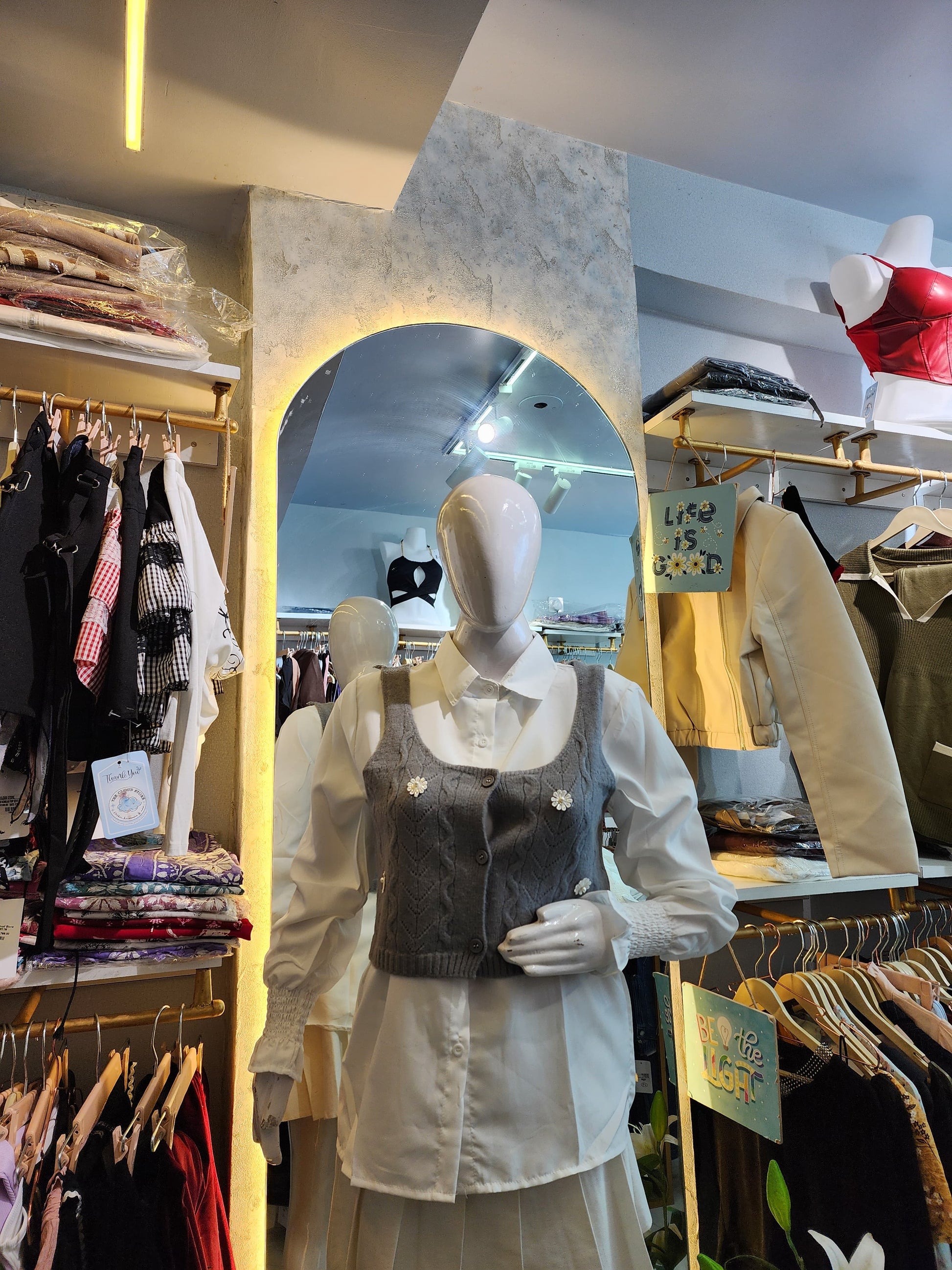Type: 2-Piece Layered Top (Knit Vest and Full-Sleeve Button-Down Shirt)