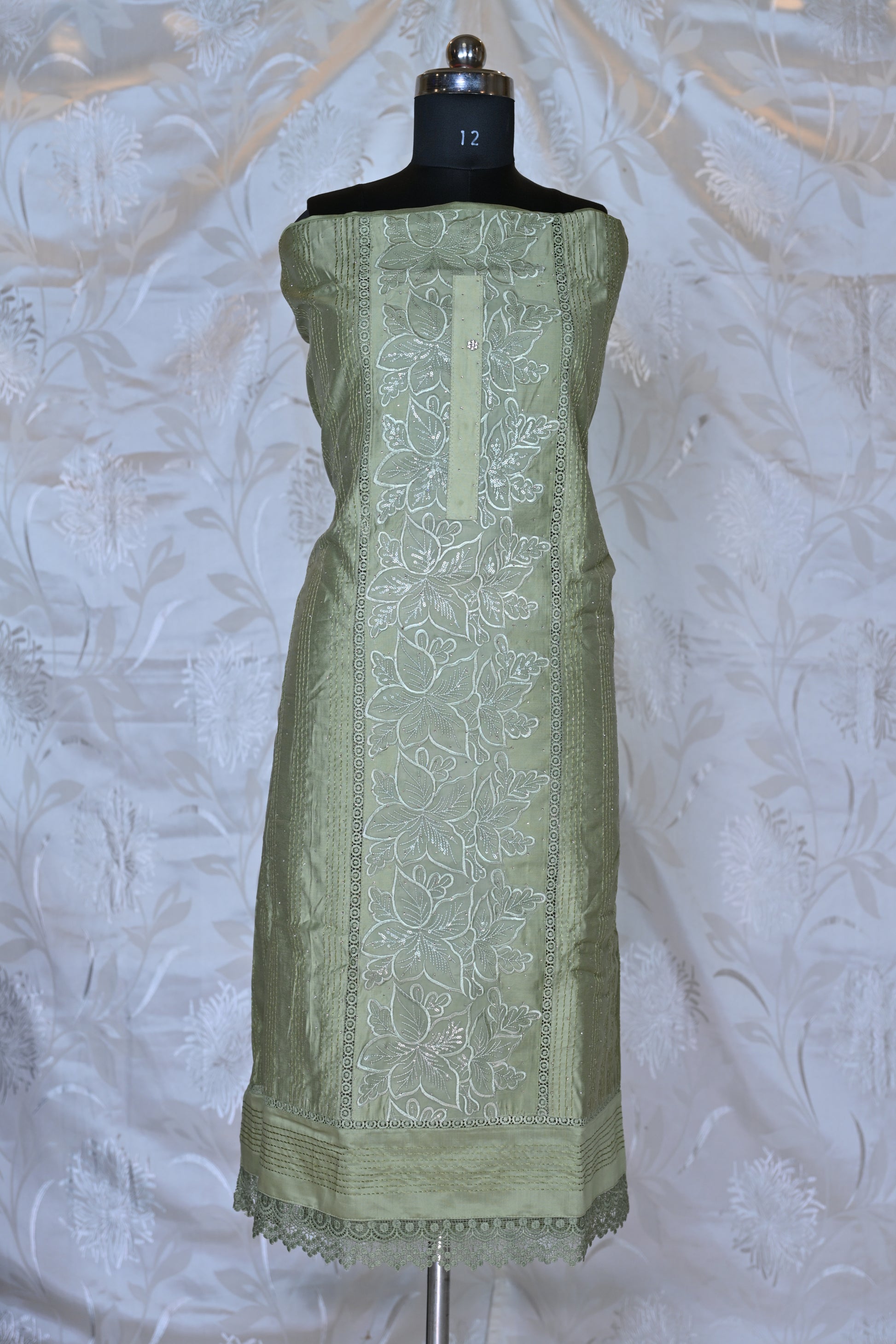 Embrace timeless sophistication with our exquisite unstitched suit set, featuring the renowned artistry of Lucknowi Chikankari. This ensemble is crafted from a comfortable and graceful fabric (likely a blend of cotton or georgette), perfect for semi-formal occasions, festive gatherings, or refined daily wear.