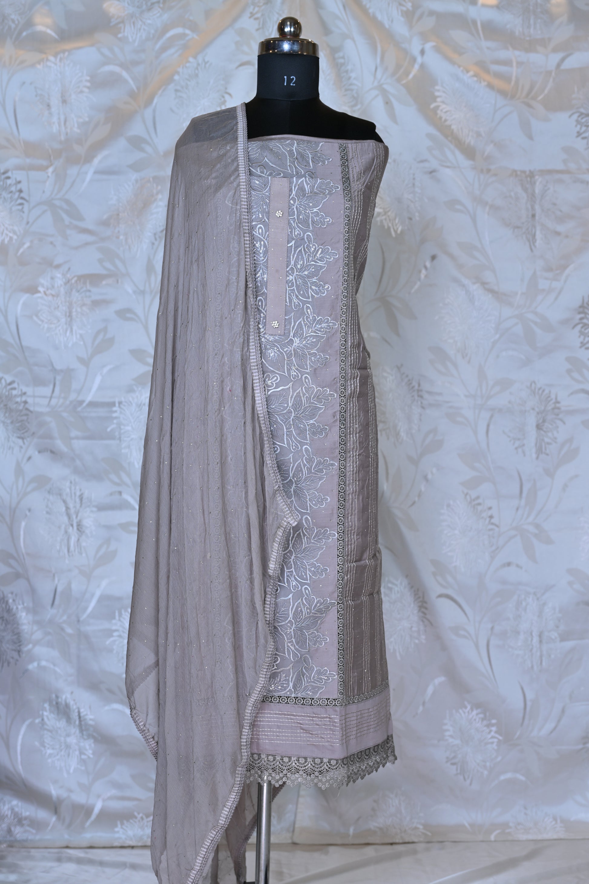 This suit set is a testament to traditional Indian craftsmanship, offering a blend of subtle beauty and luxurious comfort.