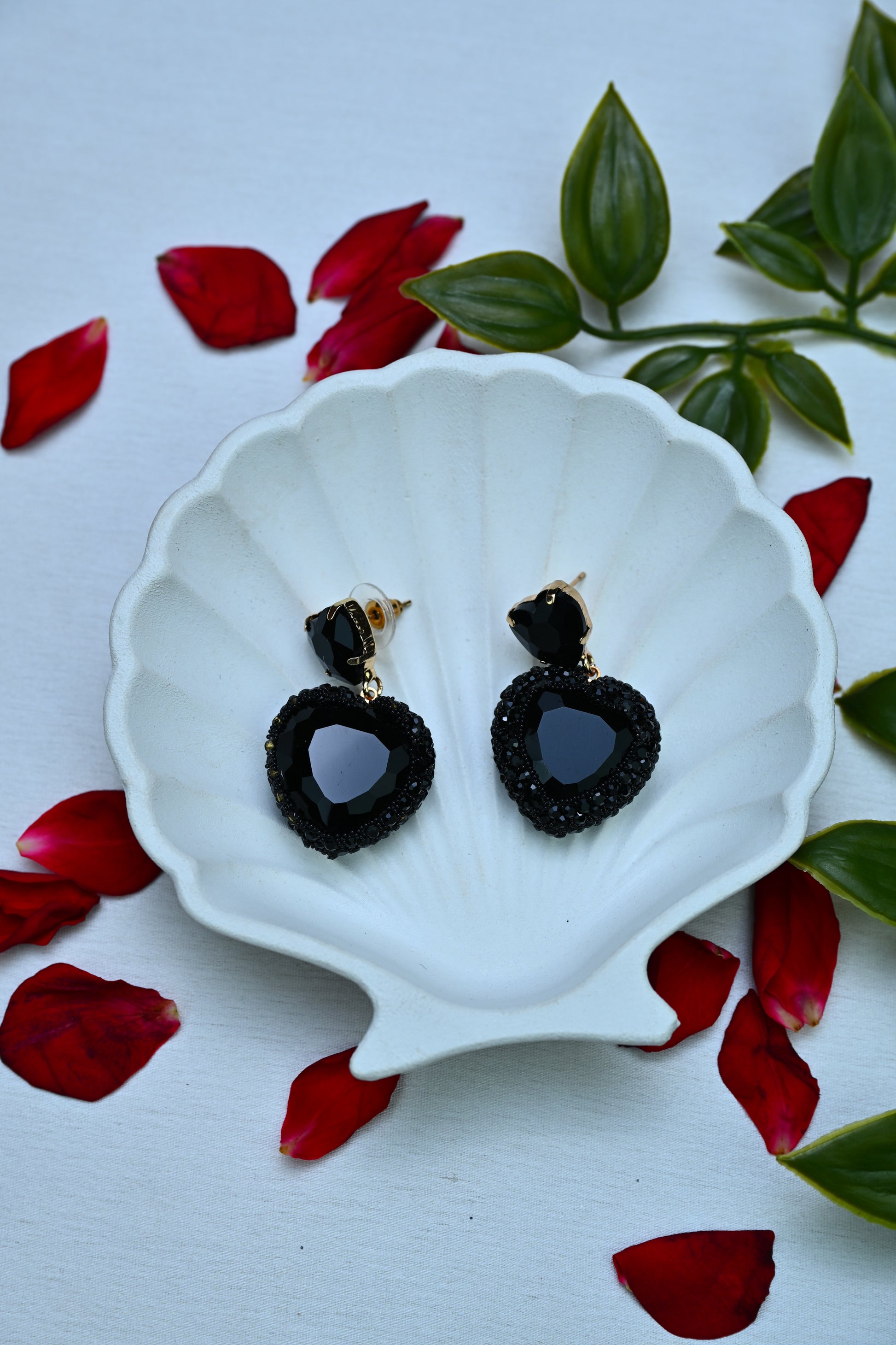 Step into a world of dark elegance with these striking black heart earrings. Featuring faceted gemstones set in a bold heart shape and rimmed with shimmering black crystal details, they exude a mysterious charm that’s both daring and divine. Perfect for a night out or a power look that speaks volumes.