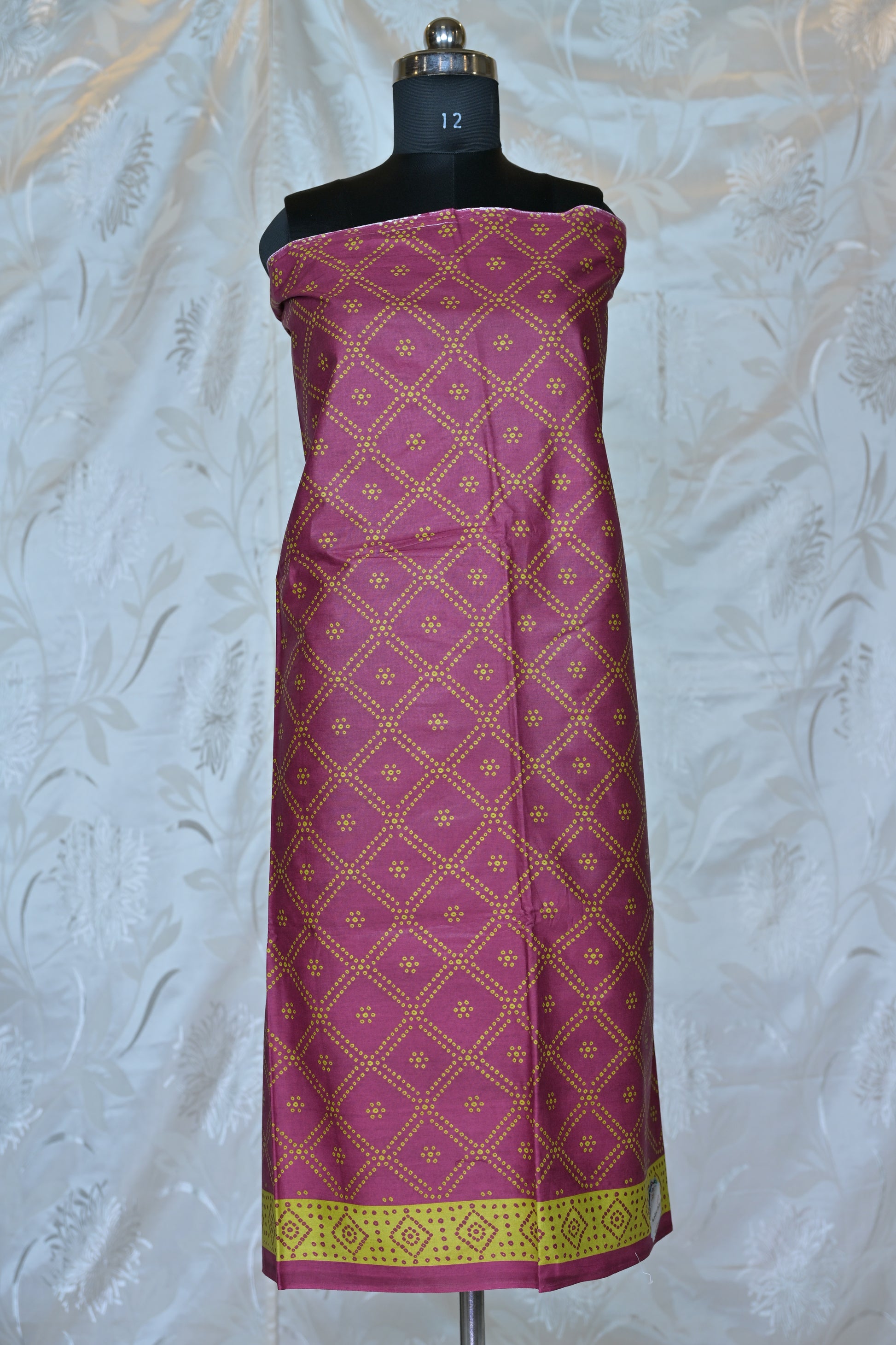 Infuse your wardrobe with vibrant tradition and playful charm with our captivating unstitched three-piece suit set. Crafted from a comfortable and breathable fabric, likely a premium cotton or a similar blend, this set features a striking fuchsia (or deep pink/magenta) as its primary color, beautifully adorned with classic Bandhani (tie-dye) inspired patterns.