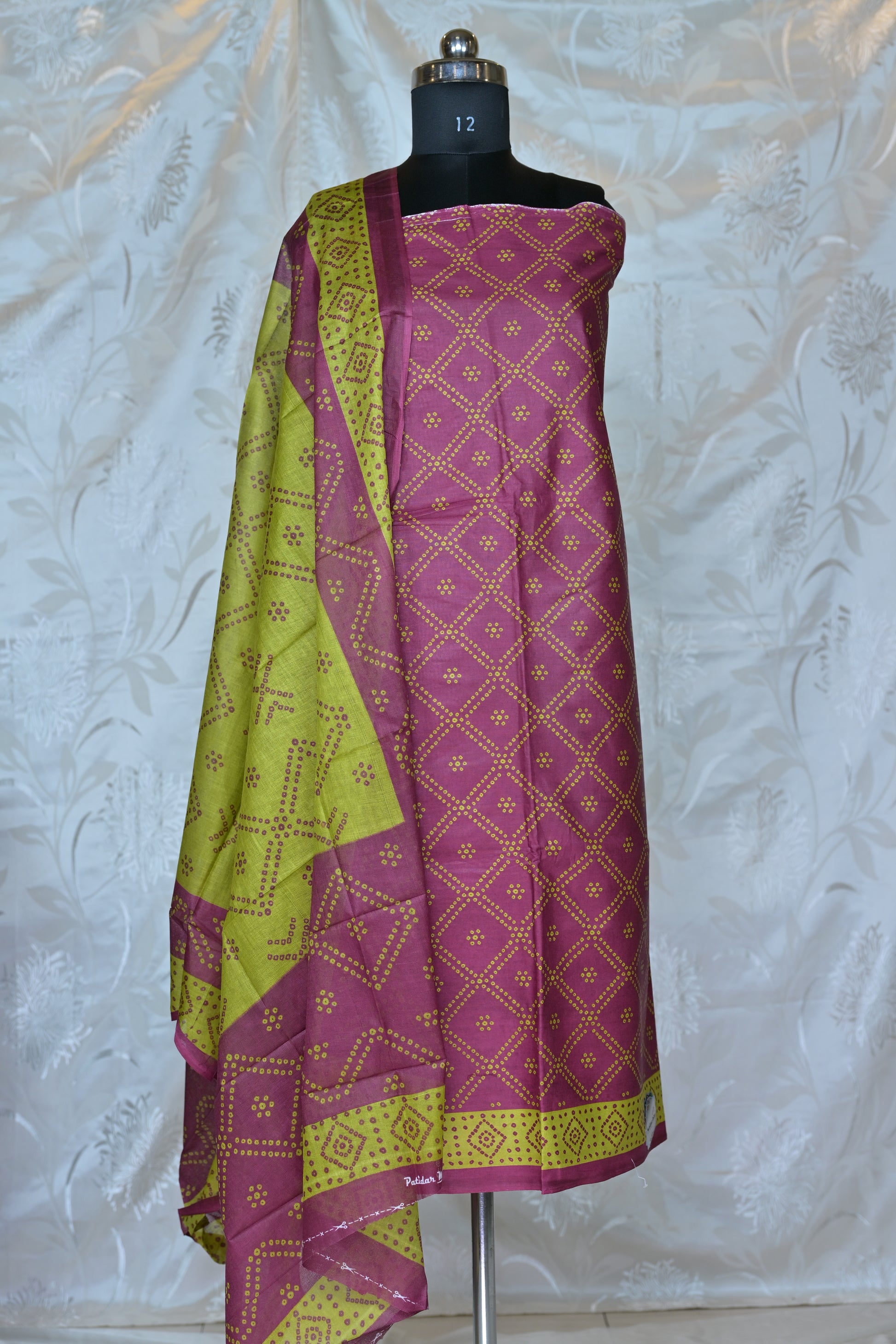 Vibrant Fuchsia & Chartreuse Bandhani Printed Unstitched Suit Set