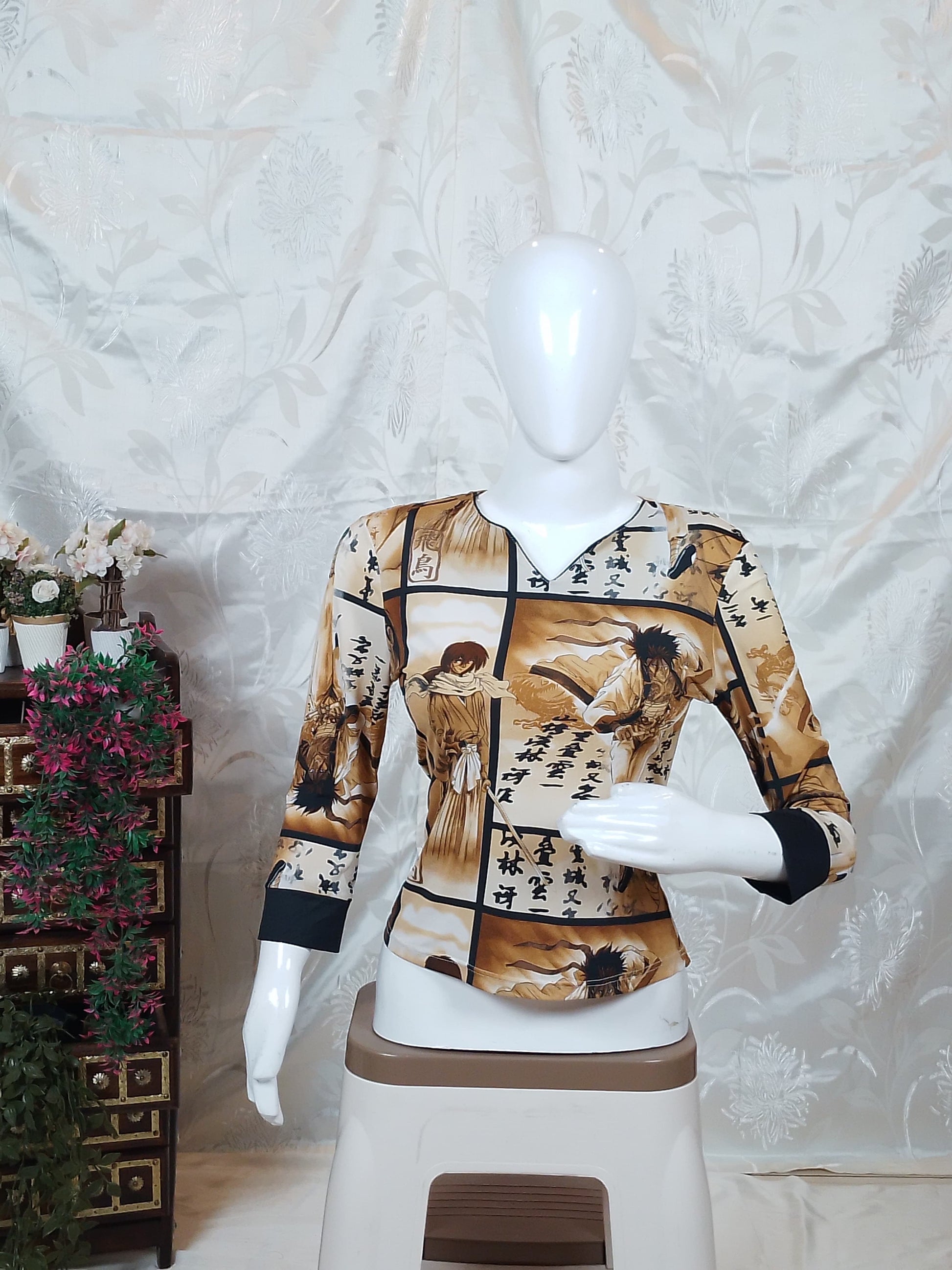 Women Beige & Brown Graphic Print 3/4 Sleeve Top