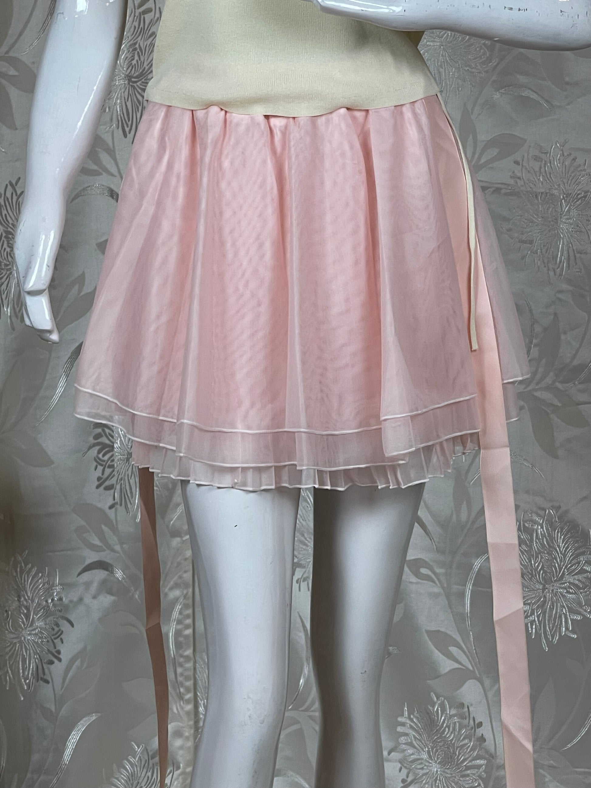 Details: The multiple layers of net fabric create a voluminous and bouncy silhouette, reminiscent of a tutu or ballet skirt.