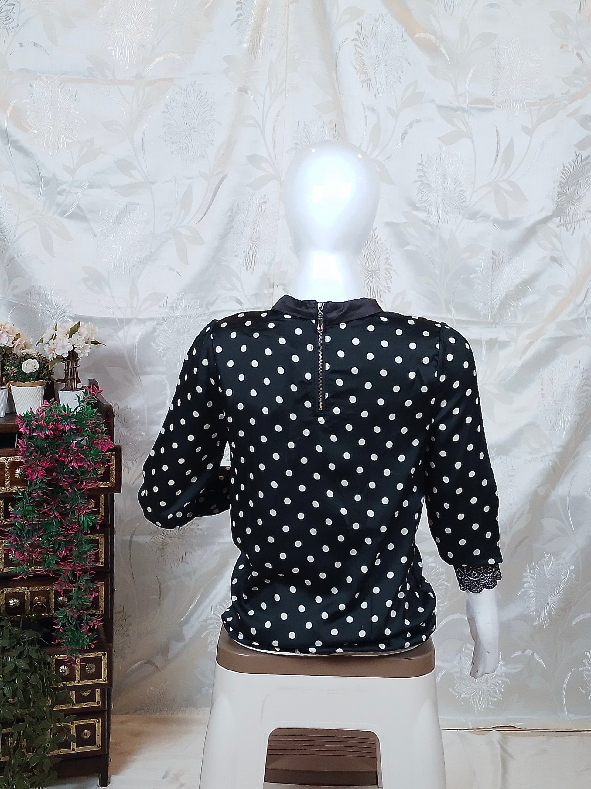 Occasion: This versatile satin polka dot top is ideal for office wear, business casual events, luncheons, evening outings, or any occasion where you want to combine classic style with a contemporary edge. Pair it with tailored trousers, a pencil skirt, or dark-wash jeans. Elevate the look with heels and subtle jewellery.
